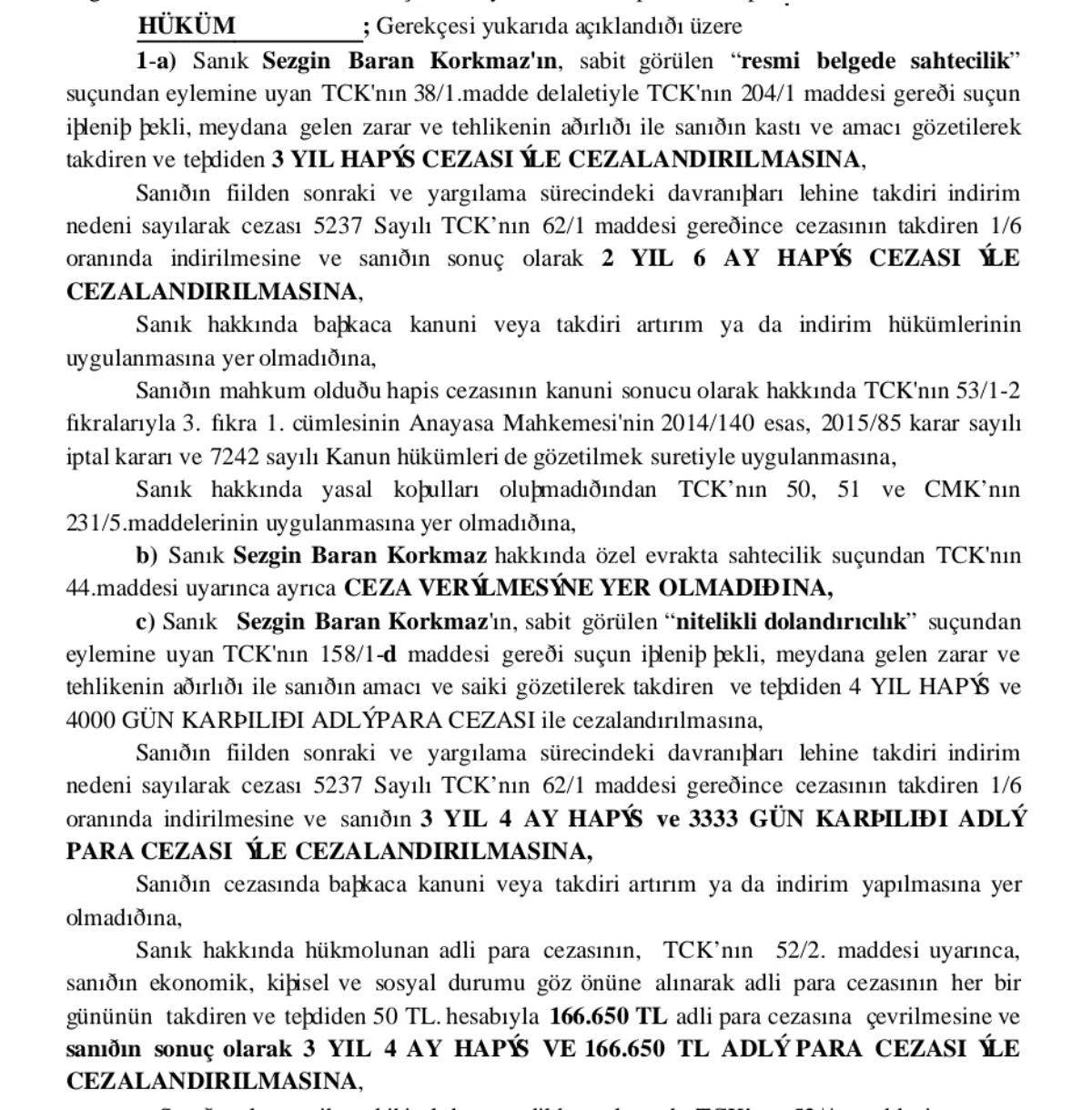 Telefon kayıtlarıyla da ilişkisi çıkarılan şebeke hakkında hüküm, 1 Nisan 2021 günü yazıldı. Mahkeme SBK’ye 'resmi belgede sahtecilik'ten 2 yıl 6 ay, 'nitelikli dolandırıcılık' suçundan 3 yıl 4 ay, toplamda 5 yıl 10 ay hapis cezası verdi. Diğer sanıklar da 'resmi belgede sahtecilik' suçundan 2 buçukar yıl ceza aldı.