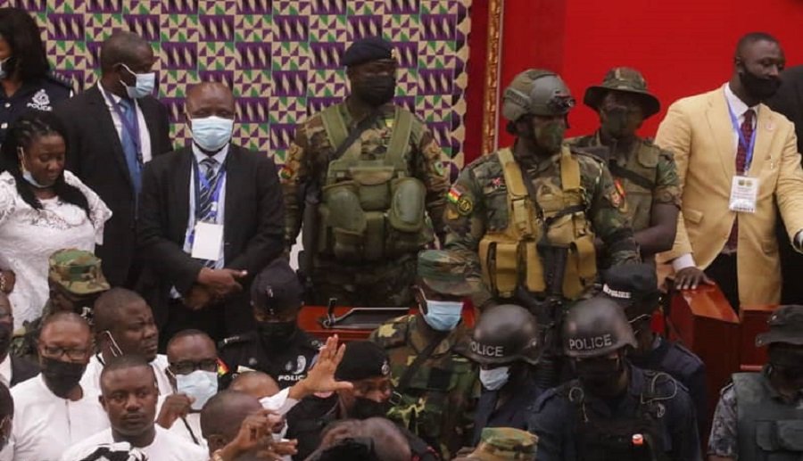 Gana Parlamentosu’nda Ulusal Demokratik Kongre ve Yeni Vatansever Parti arasında yaşanan Meclis Başkanlığı seçimi çatışmaya döndü. İki partinin milletvekilleri arasında çıkan arbadeye ordu müdahalede bulundu.