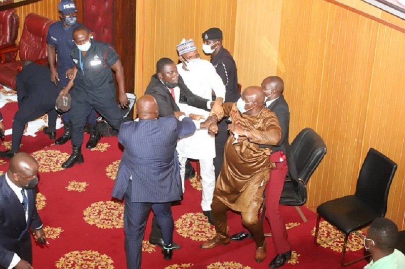 Afrika kıtasının batısında yer alan Gana Cumhuriyeti parlamentosunda Meclis Başkanlığı seçiminde yaşanan gerilim çatışmaya dönüştü.